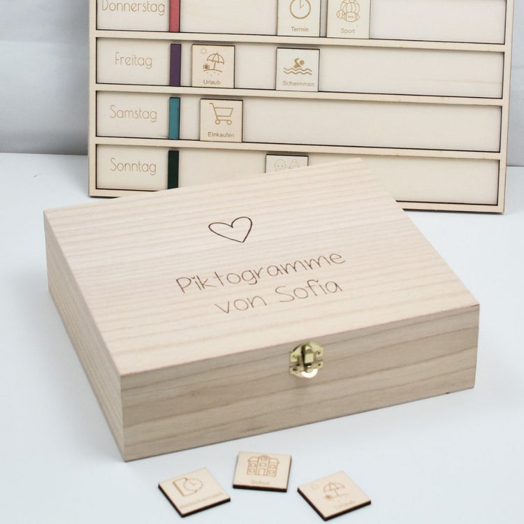 Vervollständigen Sie Ihren Deine kleine Familie Holz-Wochenplaner mit dieser praktischen Aufbewahrungskiste – für immer organisierte und griffbereite Piktogramme!