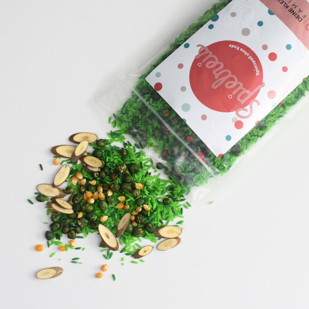 Lassen Sie Kinder das gemütliche Landleben mit unserer unterhaltsamen Bauernhof-Mischung entdecken. Ideal für den Einsatz in einer Holzspielkiste oder für kreative Spielstunden. Diese Mischung kombiniert verschiedene Grüntöne von Spielreis, kleine Holzscheiben, Maiskörner und Pasta in Blumenform. Kinder werden es lieben, zu entdecken, zu sortieren und zu kreieren, während sie spielerisch ihre Feinmotorik und Fantasie entwickeln.