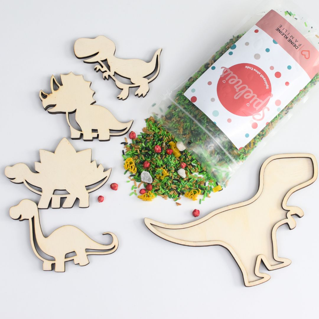 Wählen Sie eine Holzfüllform in Form eines Dinosauriers – ideal zum Befüllen mit Spielreis und zum Gestalten spannender Dino-Welten. Sie können aus verschiedenen Dinosaurierformen wählen.