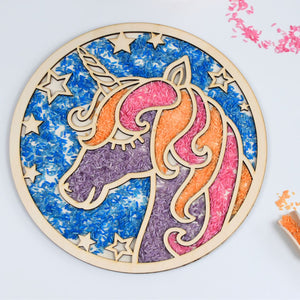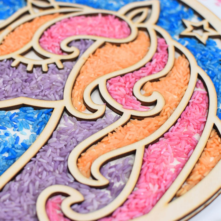 Dieses große Einhorn-Mandala (29 cm Durchmesser) verwandelt das Kinderzimmer in eine märchenhafte Kreativzone: