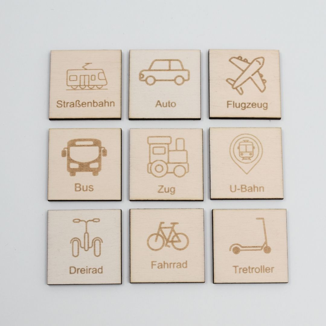 Machen Sie Ihren Wochenplaner noch vollständiger mit diesem Set aus 7 Fahrzeug-Piktogrammen! Ideal, um tägliche Reisewege und Transportmittel übersichtlich darzustellen. Ob mit dem Auto, Fahrrad oder Flugzeug - diese Piktogramme machen die Tagesplanung für Ihr Kind verständlicher und unterhaltsamer.