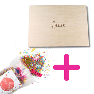 Passender Holzdeckel (51,8 × 36,9 × 2,4 cm) – optional personalisierbar mit Name und Motiv