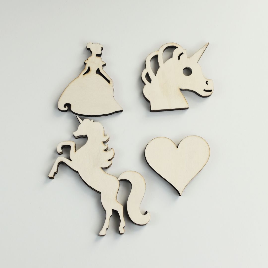 Dieses detailreiche Holzfiguren-Set bringt eine Märchenwelt in die Spielkiste. Enthält zwei Einhörner, ein Herz und eine Prinzessin – ideal für Rollenspiel und sensorisches Spiel.