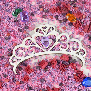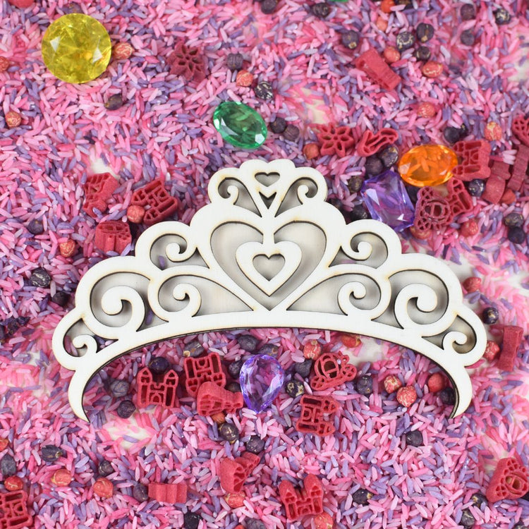 Diese zarte Diademform aus Holz lädt zum kreativen Füllen, Leeren und Sortieren ein. Sie passt perfekt zum Prinzessinnenthema und fördert sensorisches Spiel.