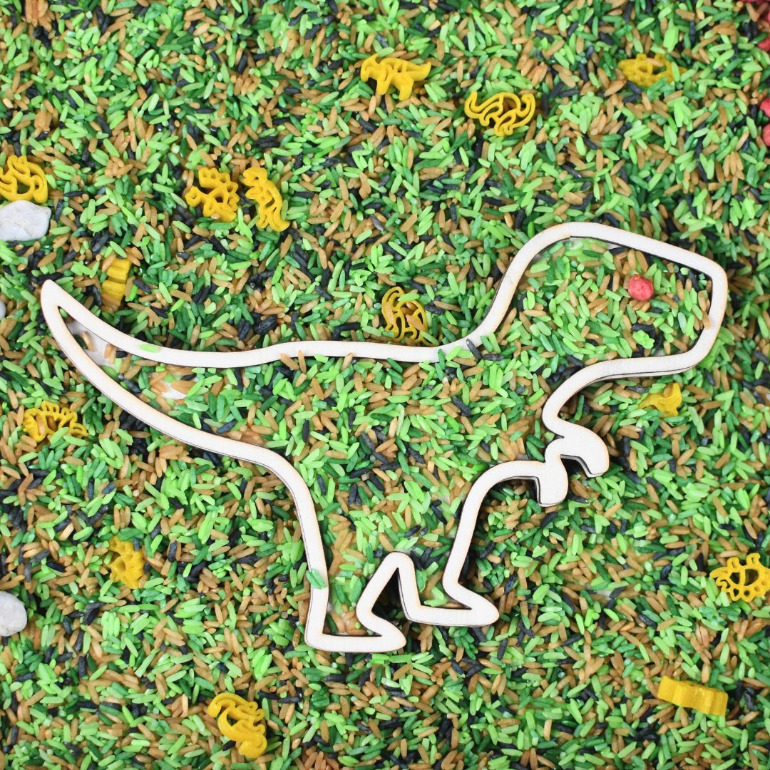 Diese robuste Dino-Form (20×13 cm) aus massivem Buchenholz verwandelt jedes Sensory Play in eine Zeitreise: