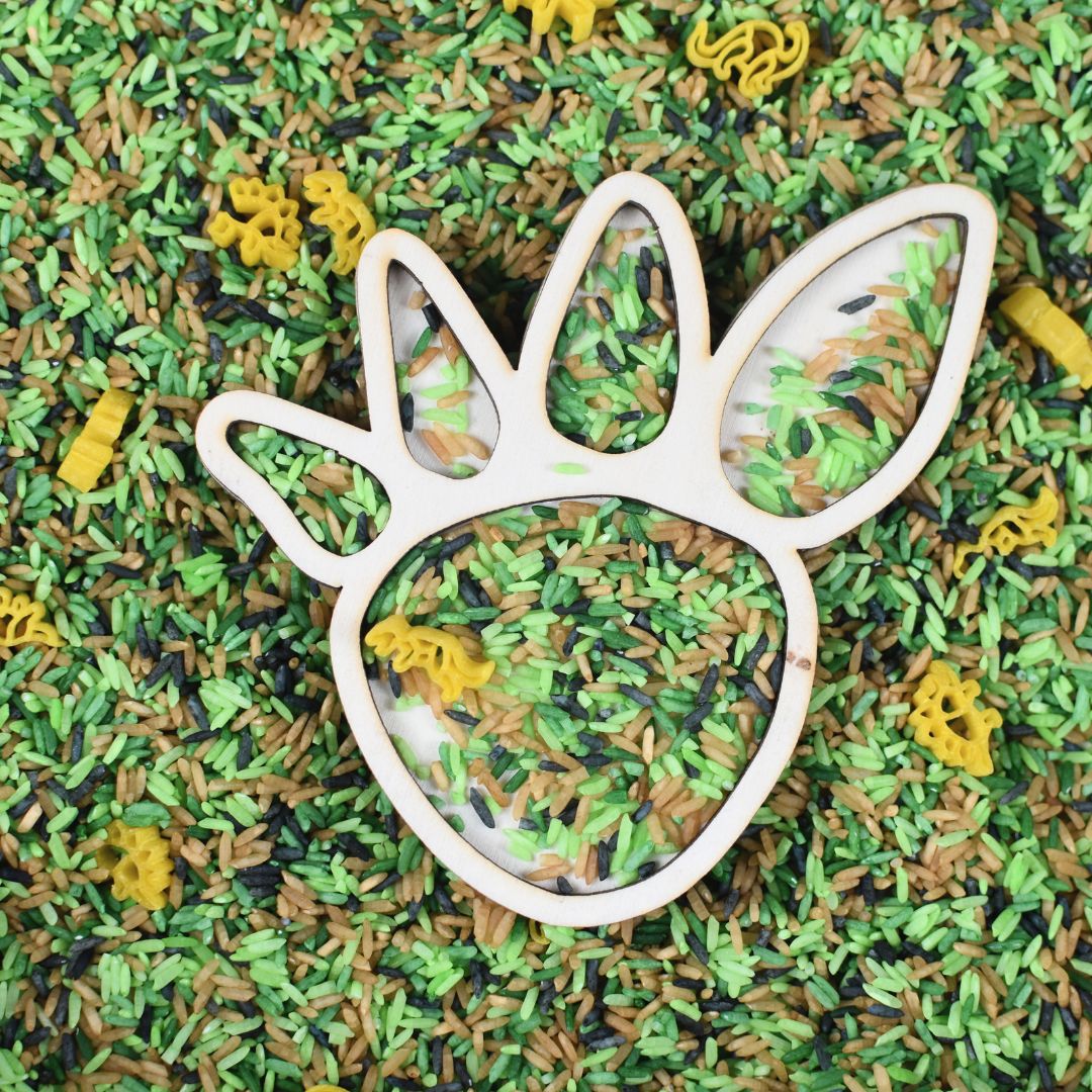 Lassen Sie Kinder ihre eigene Dino-Welt mit unserer Holz-Füllform in Form eines Dinosaurier-Fußabdrucks gestalten. Diese hochwertige Holzform ist perfekt zum Befüllen mit Spielreis, Spielerbsen oder anderen sensorischen Materialien und fördert die Entwicklung der Feinmotorik und kreatives Spiel.