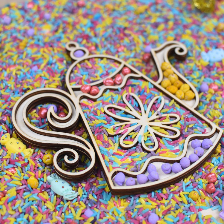 Mit dieser hölzernen Teekannen-Füllform wird jeder High-Tea-Moment zu einem kleinen Fest. Kinder können die Teekanne mit Spielreis, kleinen losen Materialien oder anderen thematischen Elementen befüllen und so ihr eigenes Teeritual gestalten. Perfekt für Rollenspiele, Open-Ended Play und gemütliche Spielmomente gemeinsam.