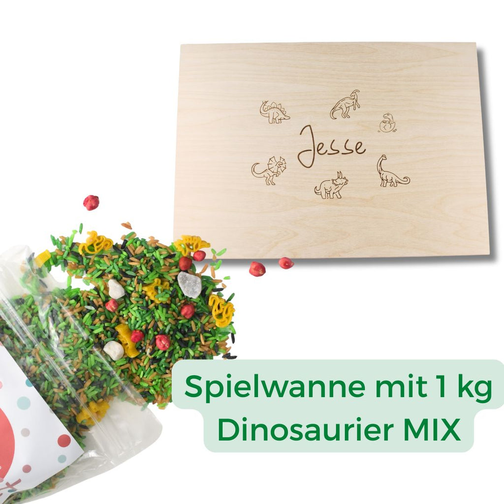 Holz-Spielwanne + 1 kg Dino Mix – Set-Rabatt – mehrere Designs verfügbar