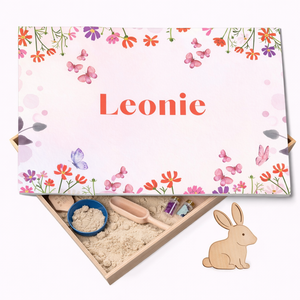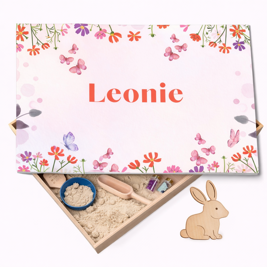 Diese Full Colour Holz-Spielwanne im Blumen- und Schmetterlingsdesign lädt Kinder zu ruhigem, fantasievollem und sensorischem Spiel ein. Zarte Blumen, fliegende Schmetterlinge und eine weiche Farbpalette schaffen eine harmonische Spielatmosphäre, die Geborgenheit und Kreativität fördert.