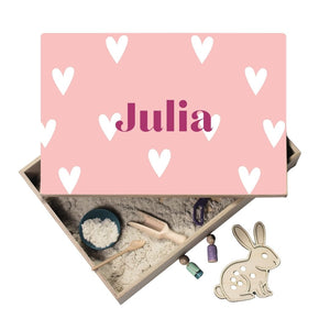 Holz-Spielwanne mit Herzchen – Julia (mit Name)