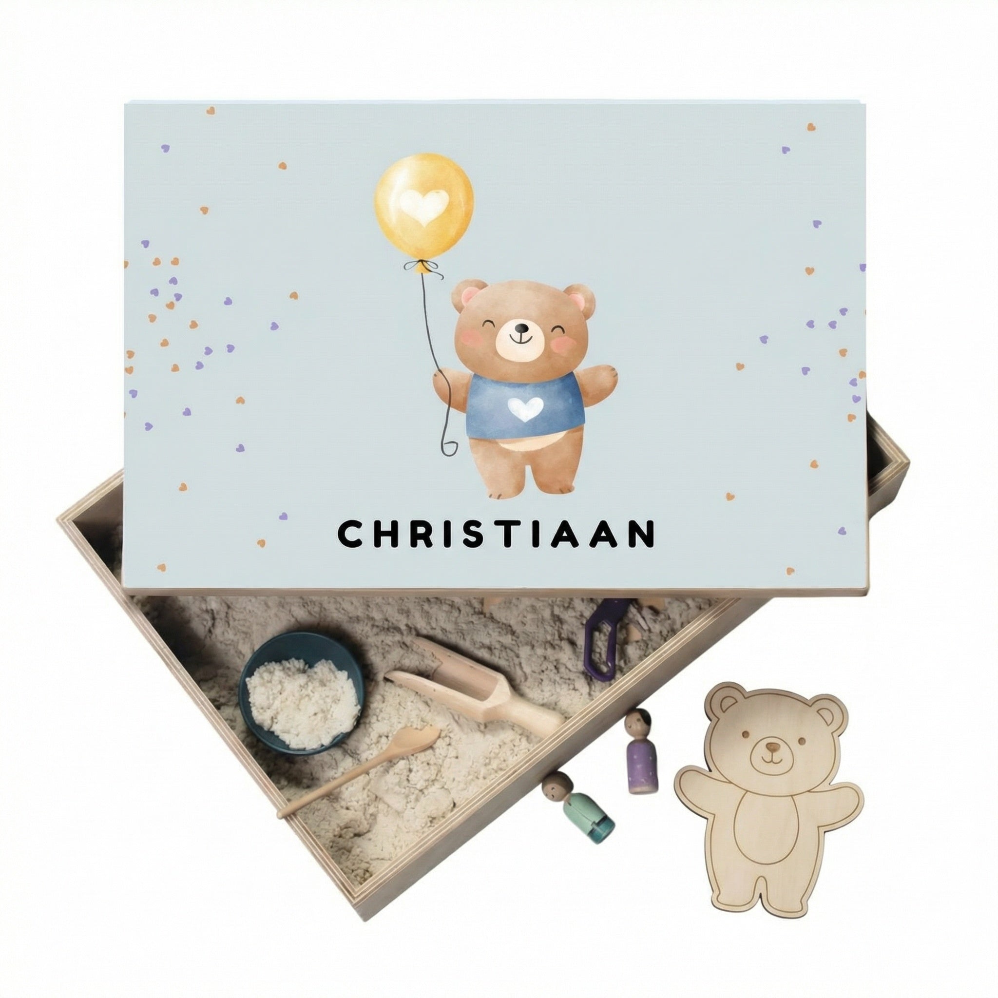 Holz-Spielwanne mit Deckel Bären (Christiaan) – personalisierbar