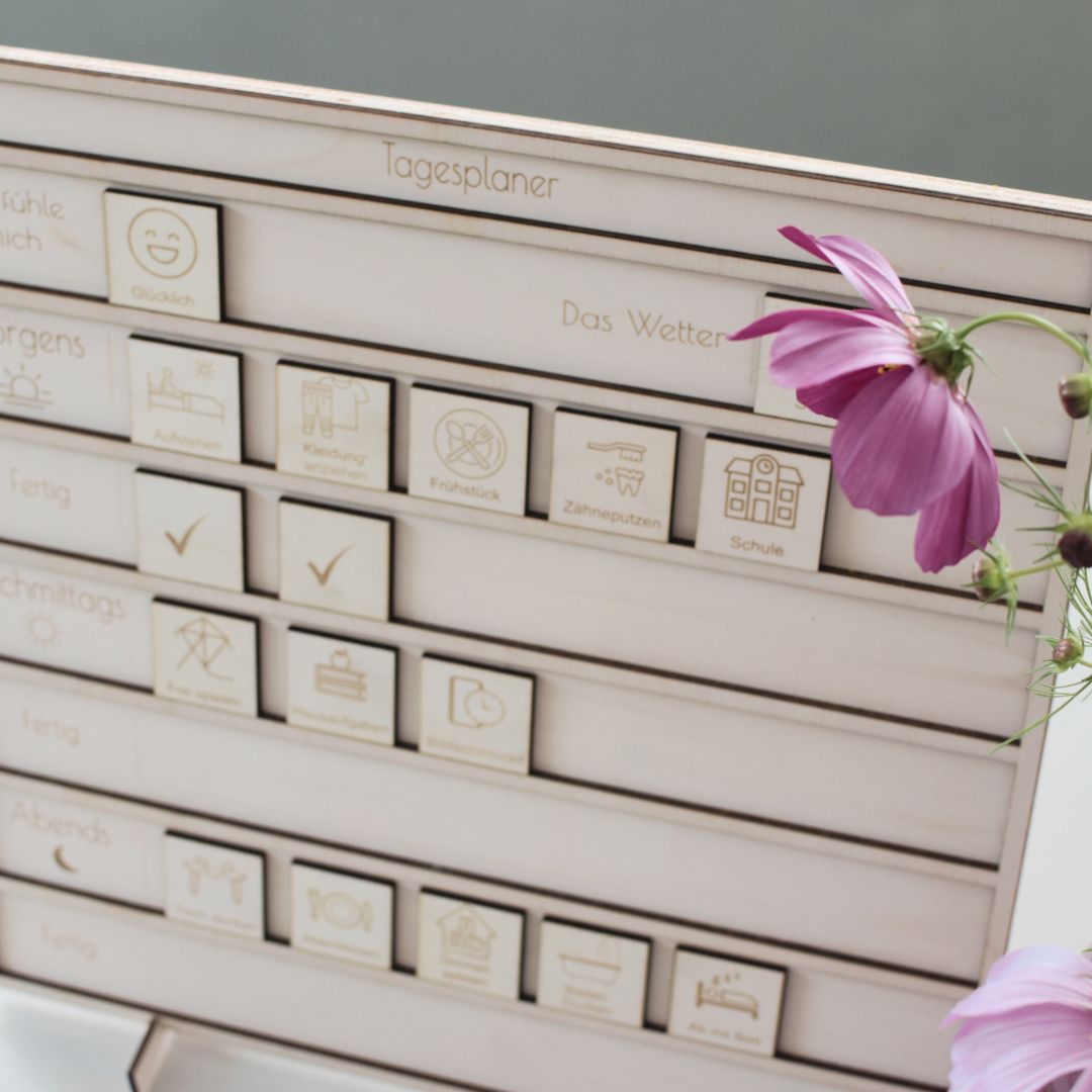 Kombiniere den Tagesplaner mit unserem Holz-Wochenplaner für Kinder.
