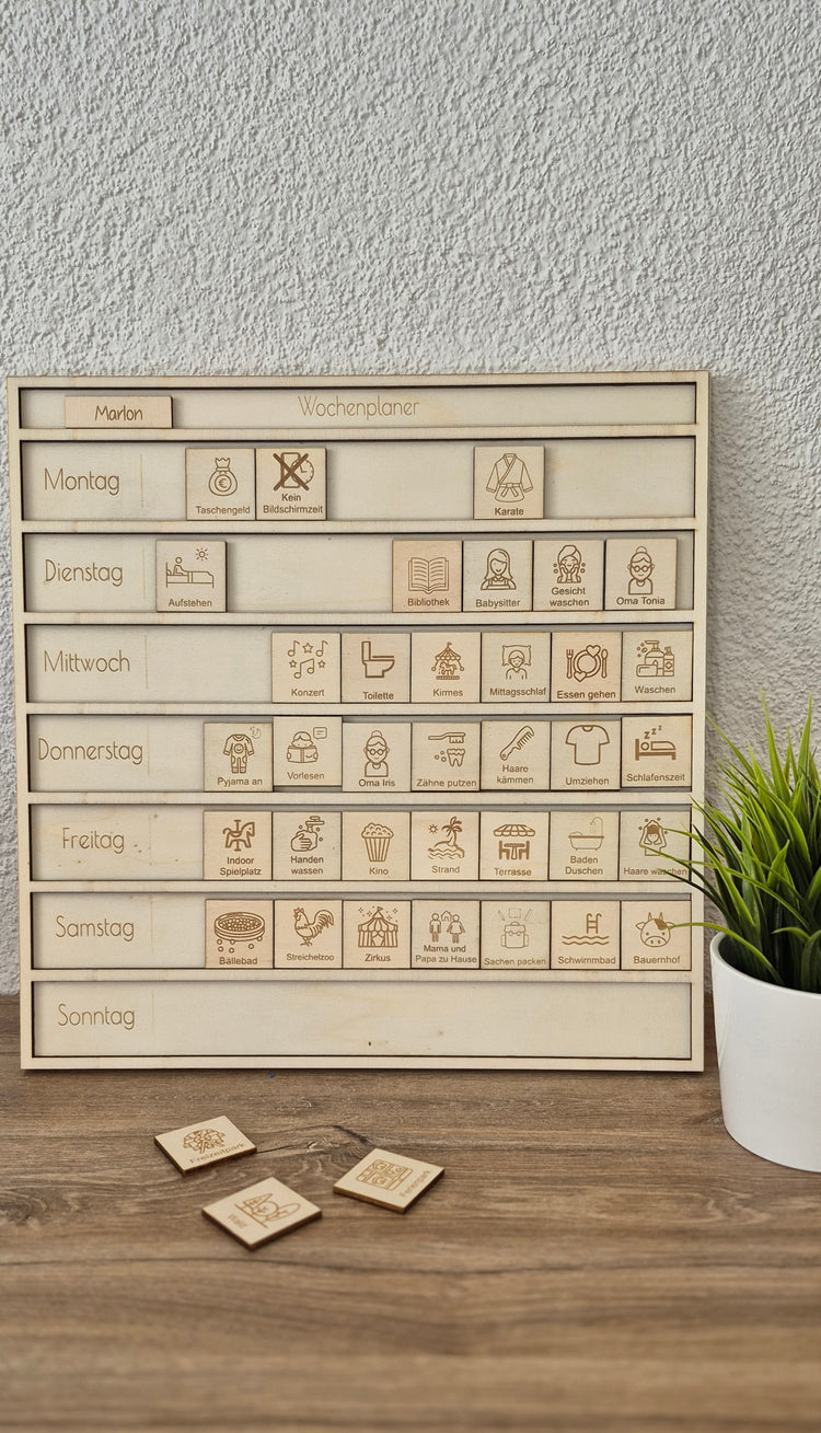 Mach den Alltag strukturierter und verständlicher mit dem Holz-Wochenplaner von Deine Kleine Familie – der mit deinem Kind mitwächst!
