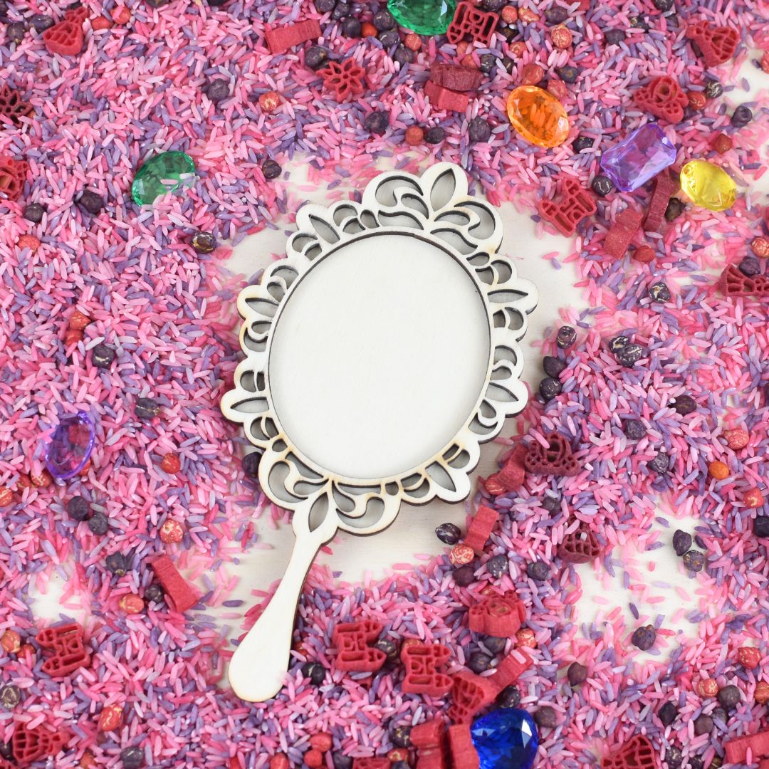 Vervollständige dein Prinzessinnen-Thema mit unserer bezaubernden Holzfüllform in Form eines Spiegels. Dieser hochwertige Holzspiegel ist ideal zum Befüllen mit Spielreis, Erbsen oder anderen sensorischen Materialien. Er regt Kinder zum kreativen und entdeckenden Spiel an und unterstützt die Entwicklung der Feinmotorik.