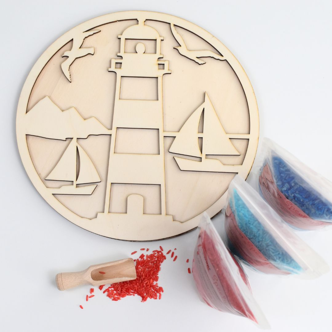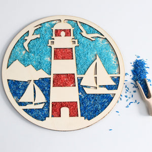 Das Set enthält alles, um eine stimmungsvolle Leuchtturm-Mandala zu gestalten: