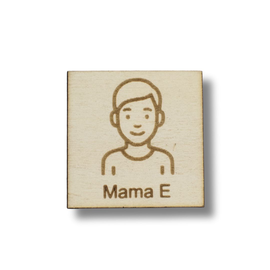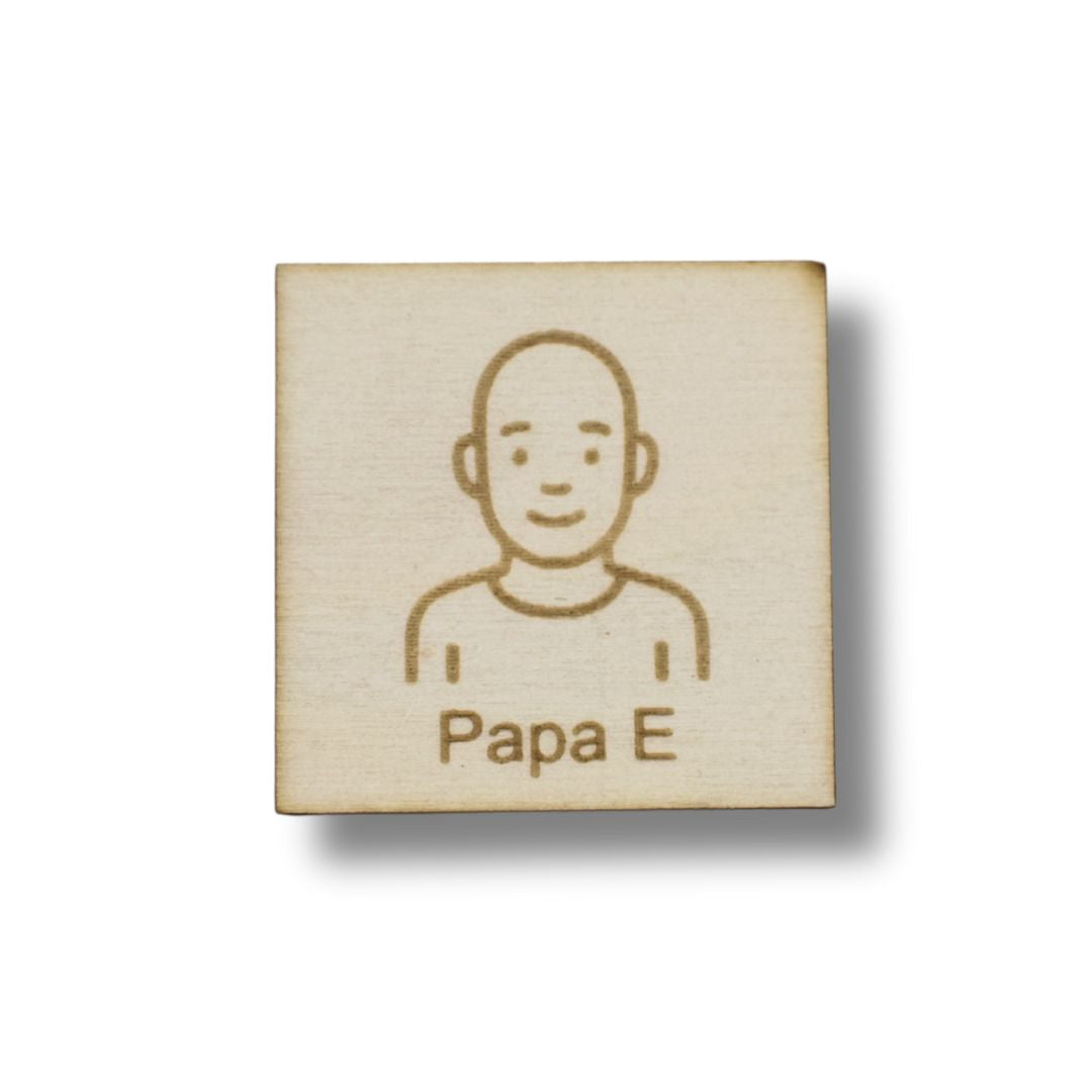 Wähle aus, welches Piktogramm du haben möchtest, und gib den Text ein, der darunter stehen soll. Das kann ein Name sein – oder einfach „Papa“ oder „Mama“.