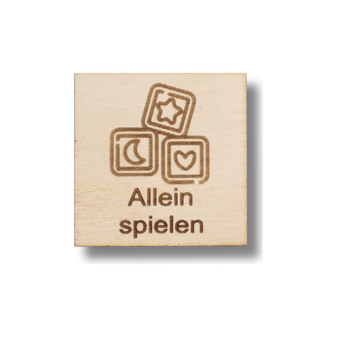 Mit dem Piktogramm „Allein spielen“ zeigen Sie ganz einfach an, wann Ihr Kind selbstständig spielt.