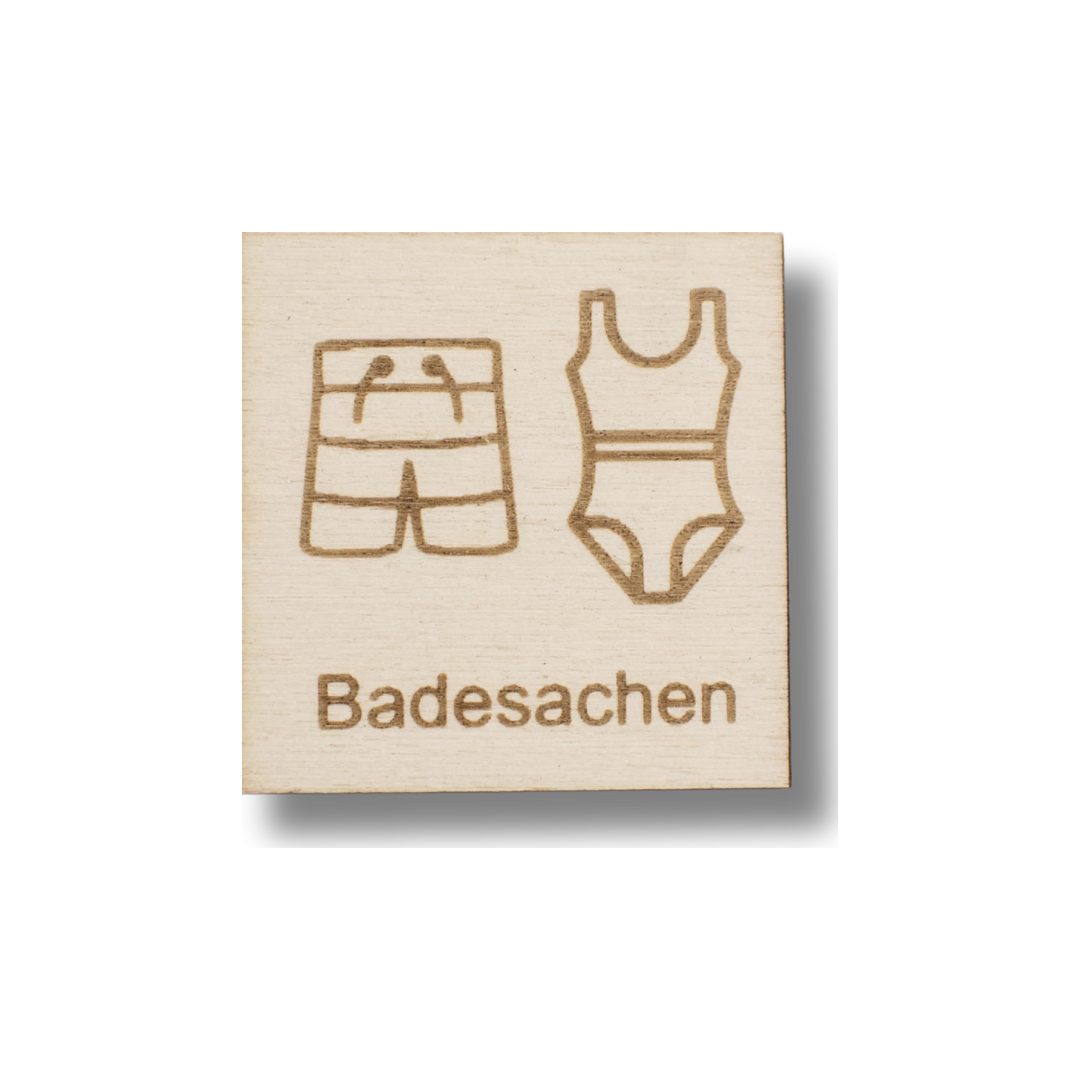 Mit dem Piktogramm Badesachen weiß dein Kind sofort, wann es Zeit ist, die Schwimmsachen mitzunehmen oder anzuziehen. Ideal für Schwimmunterricht oder warme Tage.