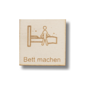 Mit diesem fröhlichen Piktogramm „Bett machen“ kannst du ganz einfach anzeigen, wann eine kleine Hausaufgabe ansteht. Eine praktische Möglichkeit, Kinder in den Haushalt einzubeziehen und diese Aufgabe in den Wochenplaner zu integrieren.