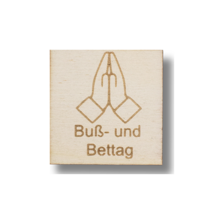 Das Piktogramm „Buß- und Bettag“ ergänzt den Holz-Wochenplaner perfekt und zeigt Kindern sowie Eltern, wann dieser besondere Tag zur Besinnung und Ruhe stattfindet. So behalten Familien den Überblick über außergewöhnliche Feiertage und können sich gemeinsam darauf einstellen.