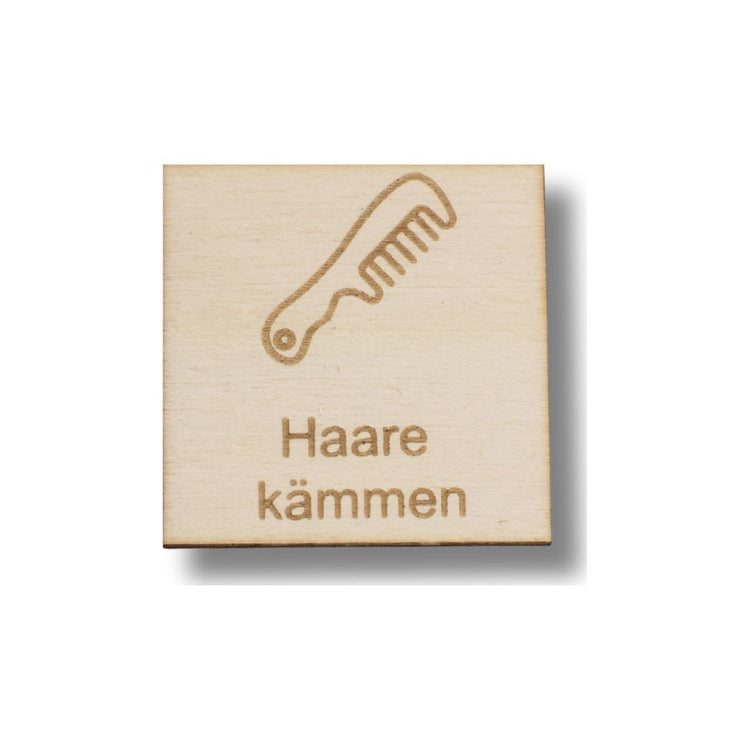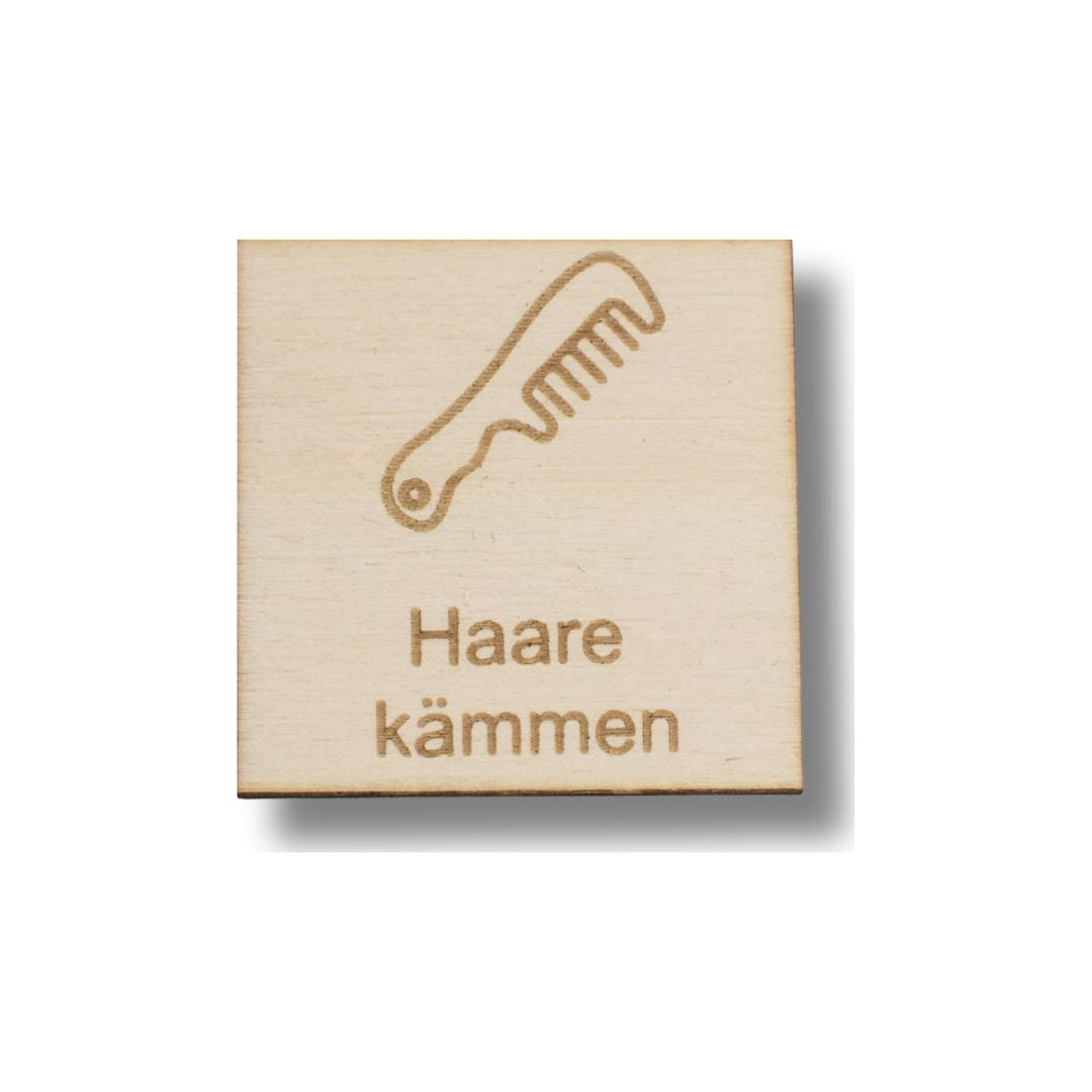 Dieses praktische Piktogramm zeigt deutlich an, wann dein Kind sich die Haare kämmt. Ideal, um Struktur und Übersicht in deinem Wochenplan zu schaffen.