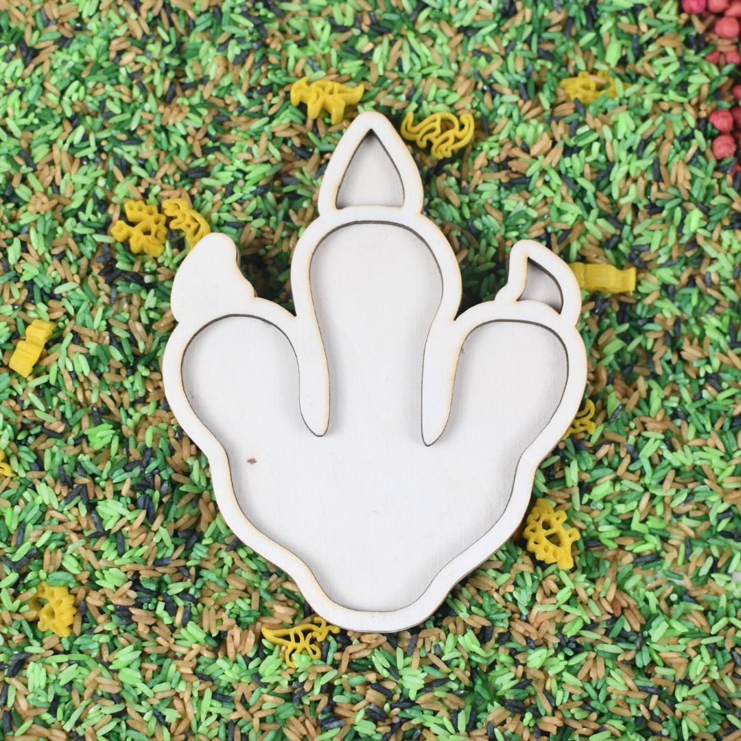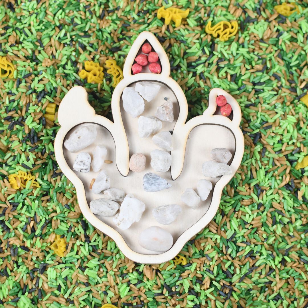 Erwecken Sie das Dino-Thema zum Leben mit unserer robusten Holz-Füllform in Form einer Dinosaurier-Klaue. Diese hochwertige Holzform ist ideal zum Befüllen mit Spielreis, Spielerbsen oder anderen sensorischen Materialien. Sie regt Kinder zu kreativem und entdeckendem Spiel an und fördert gleichzeitig ihre Feinmotorik.