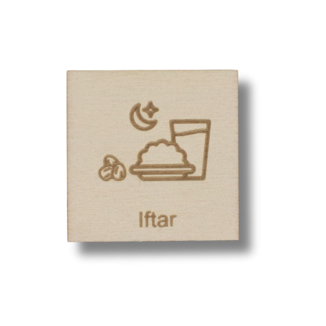 Dieses Symbol zeigt, wann das Fastenbrechen (Iftar) stattfindet – eine wichtige Zeit im Ramadan. Kinder lernen so spielerisch, den Tag zu strukturieren.