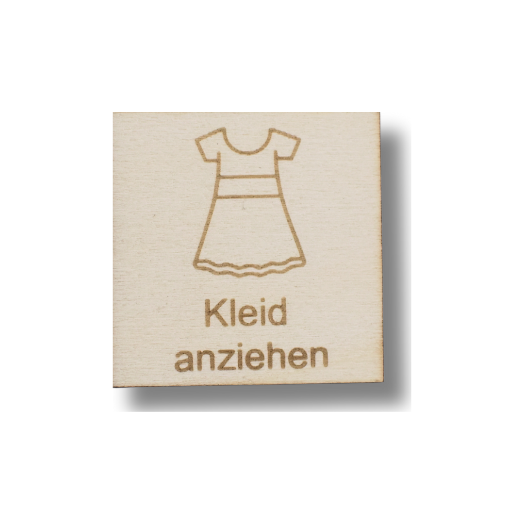 Mit dem Piktogramm „Kleid anziehen“ zeigst du einfach an, wann in der täglichen Routine das Kleid angezogen wird.