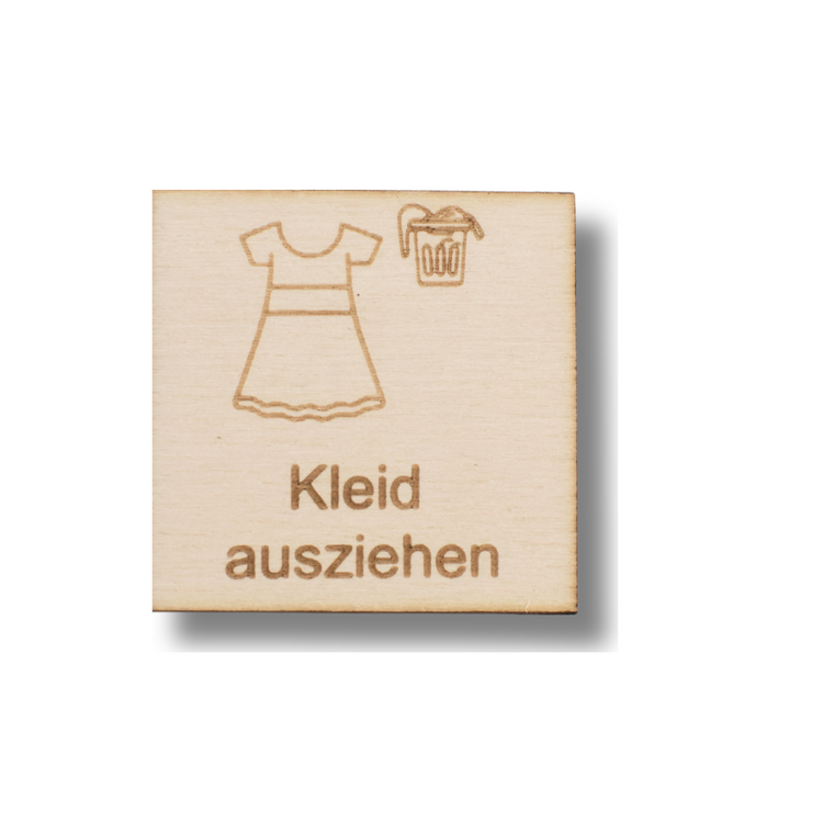 Mit dem Piktogramm „Kleid ausziehen“ zeigst du an, wann das Kleid wieder ausgezogen wird – z. B. vor dem Schlafengehen oder Umziehen.