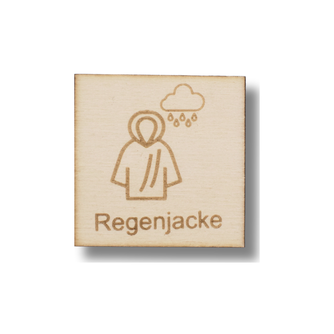 Mit dem Piktogramm „Regenjacke“ weiß dein Kind genau, wann es Zeit ist, eine Regenjacke zu tragen – besonders an nassen Tagen hilfreich.