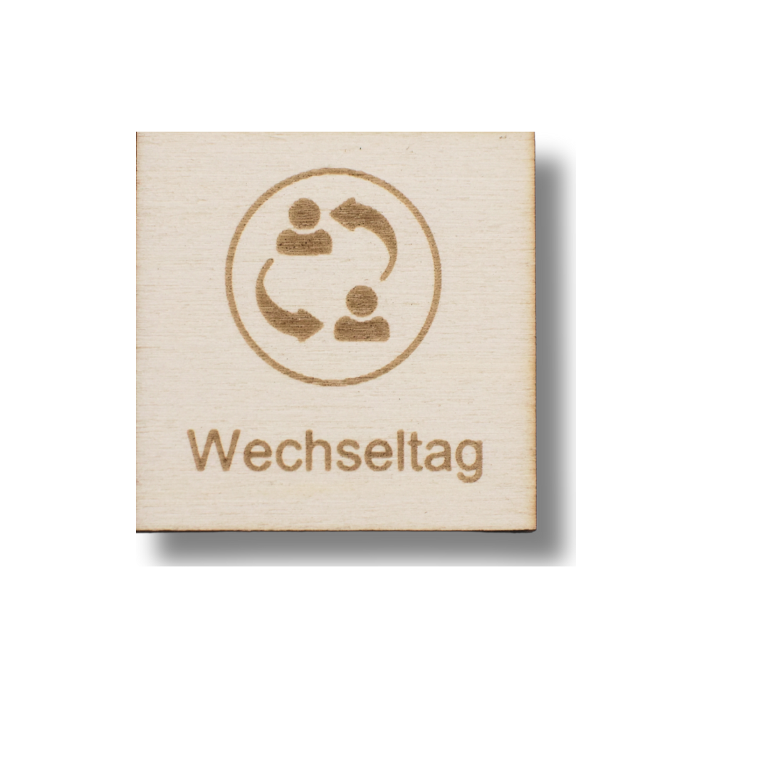Dieses praktische Symbol zeigt den Wechseltag an. Ideal für eine strukturierte Wochenplanung bei getrennten Eltern.