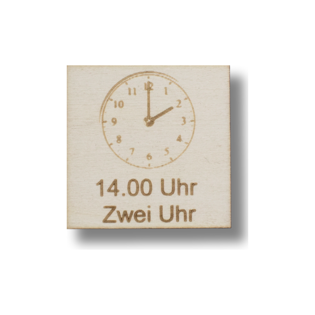 Mit dem Piktogramm „Zwei Uhr“ zeigst du klar an, wann eine Aktivität um 14:00 Uhr stattfindet – ideal zur Zeitstrukturierung.