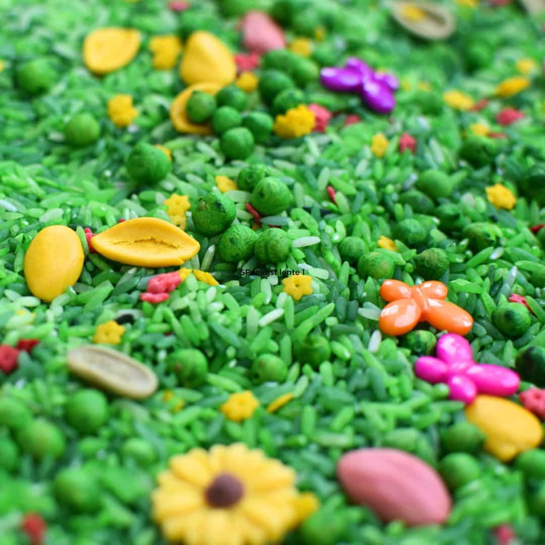 Hol dir den Frühling ins Haus mit unserer Spielreis Frühling Mix. Eine frische, grüne Basis voller Blumen, Blütenblätter und kleiner Frühlingsakzente, die Kinder sofort zum Entdecken, Schaufeln und Fantasieren einlädt.
