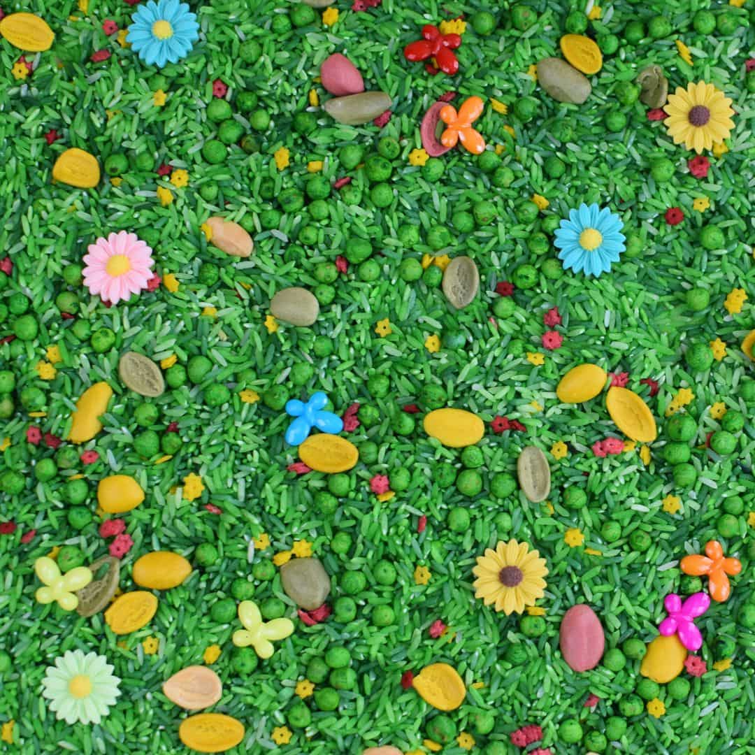 Spielreis Frühling – Grüne Sensory-Mix mit Blumen & Details