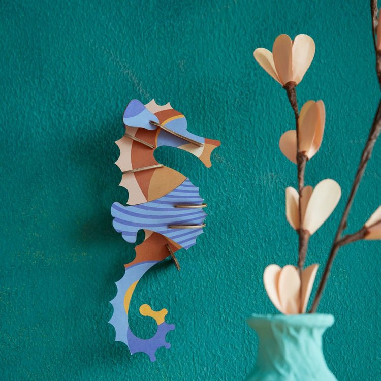 Hänge das Blue Ringlet Seahorse an die Wand oder platziere es zwischen Büchern und Pflanzen – die leuchtenden Farben und das detailreiche Design schaffen eine fröhliche Unterwasserstimmung. Dieses Seepferdchen regt die Fantasie der Kinder an und lädt zu abenteuerlichen Tauchgängen ein.
