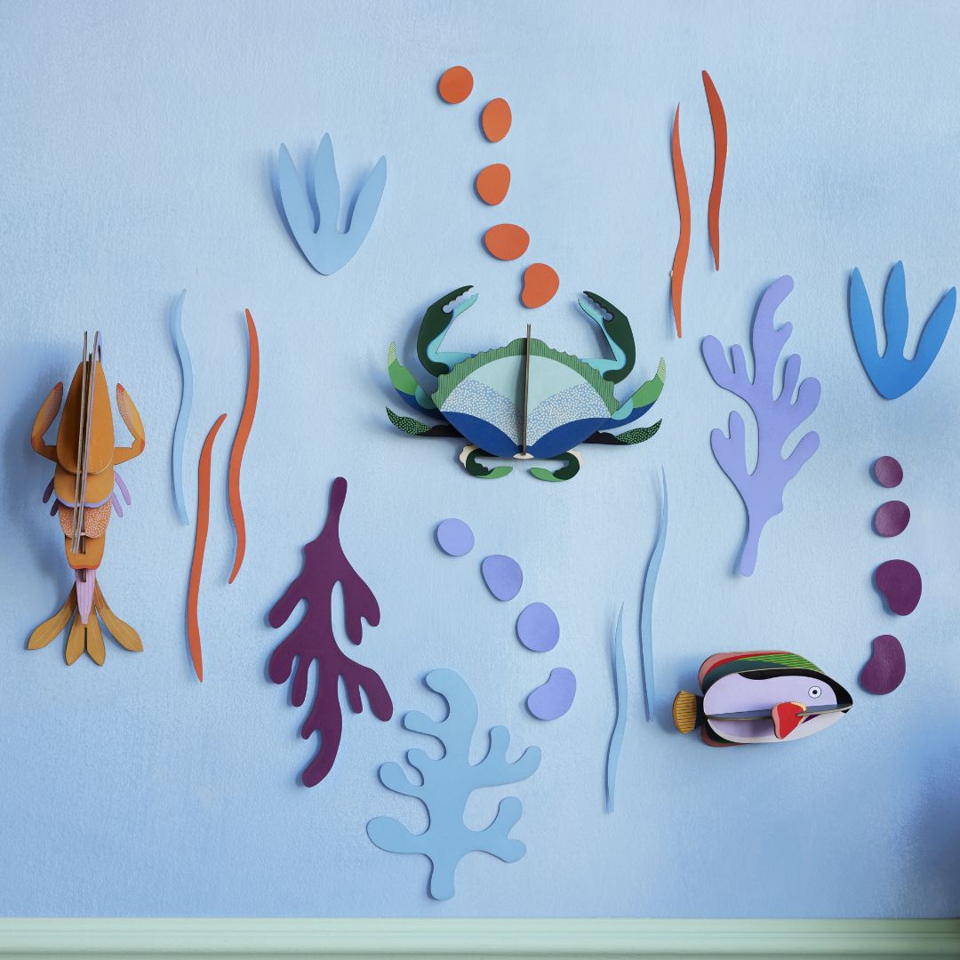 Tauchen Sie ein in die bunte Meereswelt von Studio ROOF Ocean's Tale! Diese Kollektion fröhlicher Meerestiere bringt Leben und verspielte Details in jedes Kinderzimmer. Hergestellt aus recyceltem Karton und mit pflanzlichen Farben bedruckt, ist dieses einzigartige Kunstwerk perfekt für Eltern, die umweltfreundliche und stilvolle Dekoration lieben.
