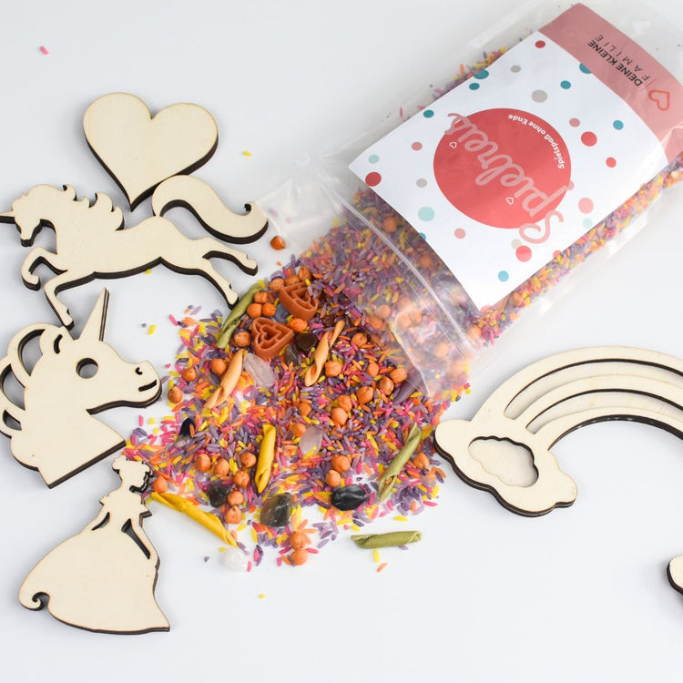 - 1 kg Unicorn-Spielreis (rosa, lila, gelb)