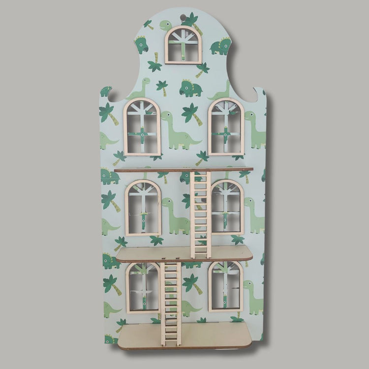 Wandpuppenhaus – Klassisches Grachtenhaus mit Dinosaurier-Print