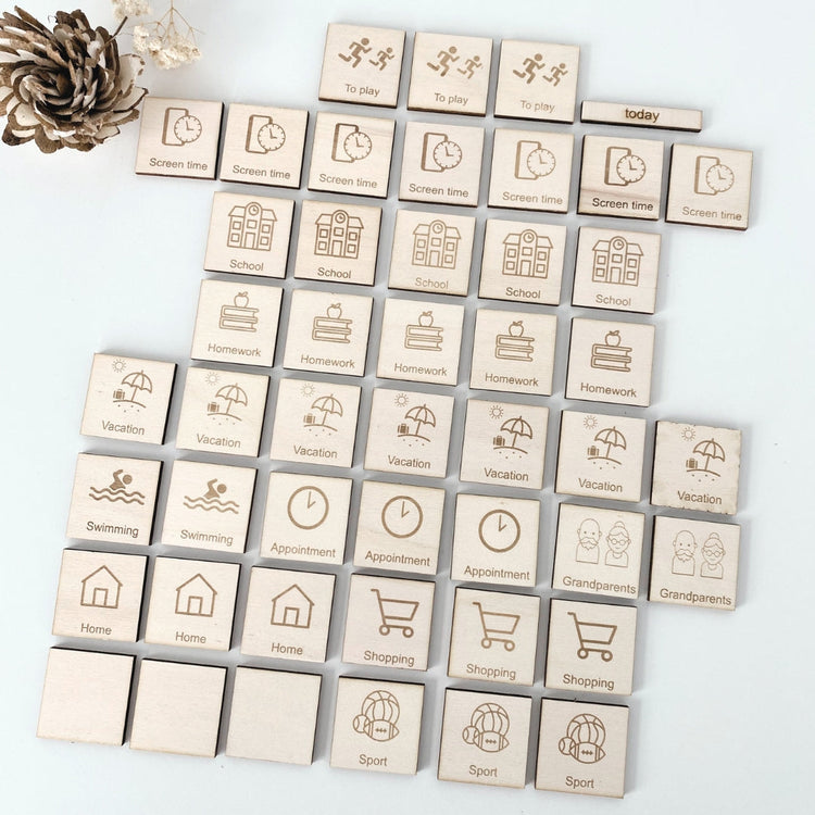 You can choose individual icons via this page. This way you can put together your own weekly planner yourself. You can choose from different languages.